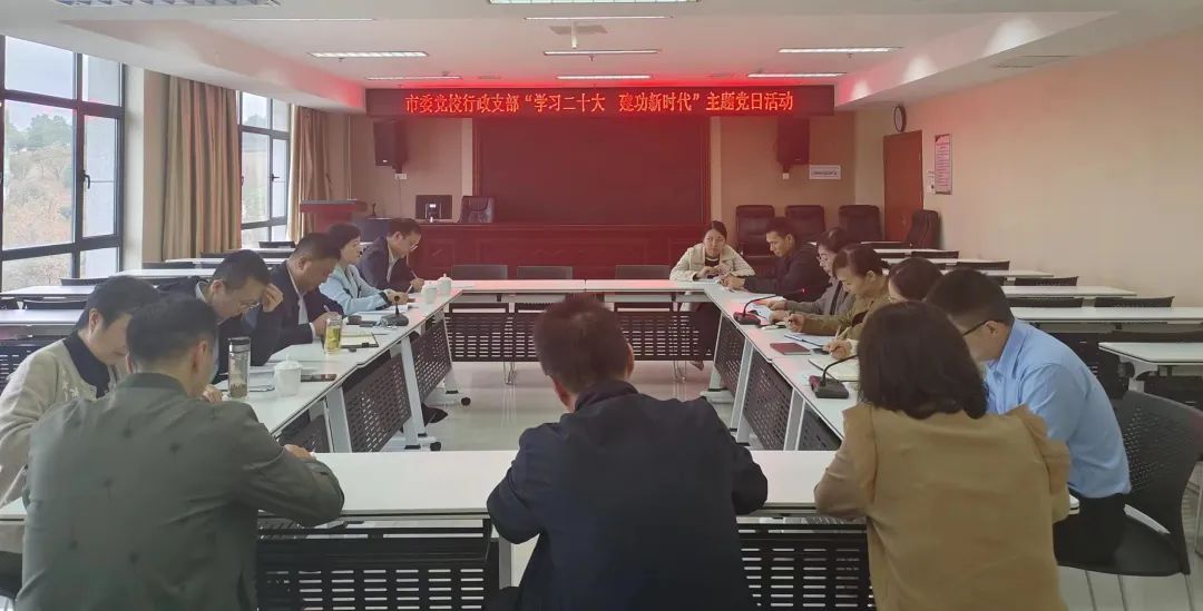 为深入学习贯彻党的二十大精神,进一步增强党支部的凝聚力和战斗力,激励广大党员充分发挥先锋模范作用,11月3日,市委党校各党支部分别开展了“学习二十大 建功新时代”主题党日活动,常务副校长、机关党总支书记彭先荣同志及副县级以上党员领导干部以普通党员身份参加了此次活动。